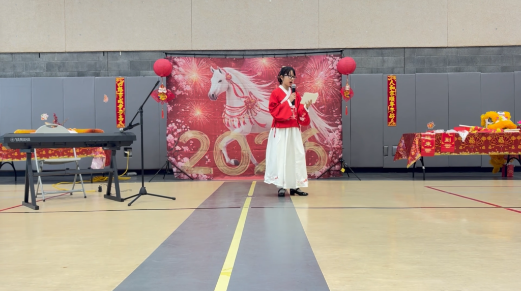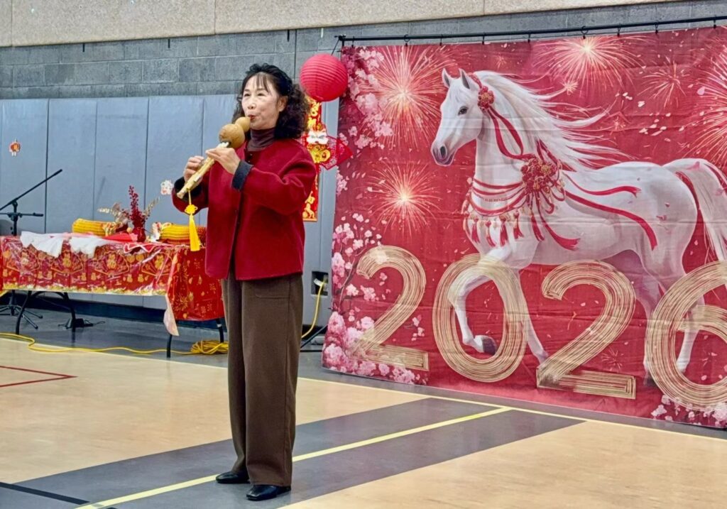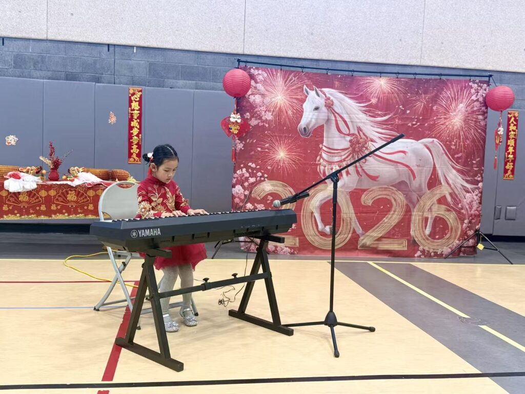The program continued with live instrumental performances from young musicians in our community, including traditional Chinese piano works and New Year–themed music.